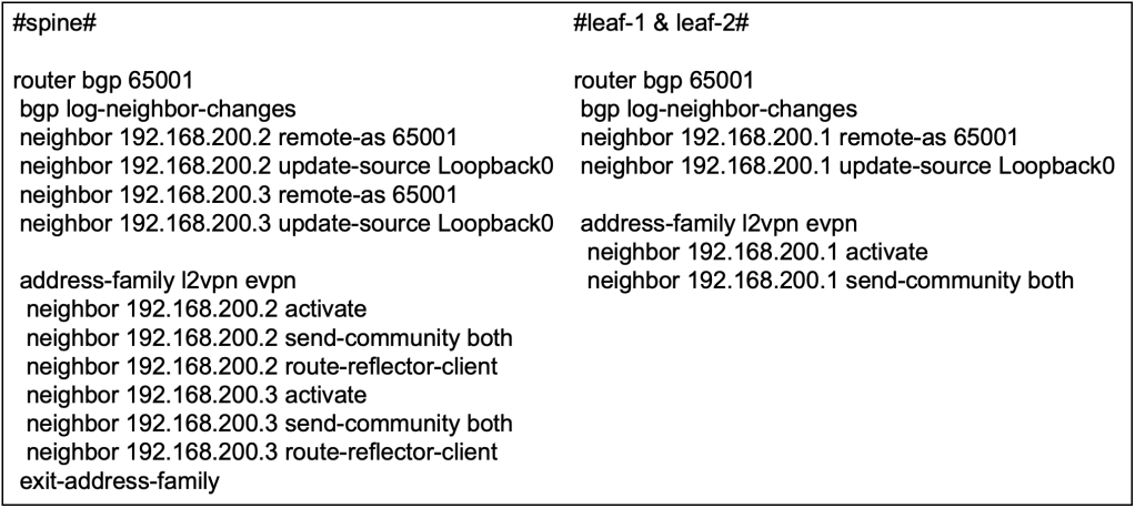 As discussed in the initial section, we will require the use of IPv4 unicast address-family in BGP to advertise L3 reachability in the fabric because EVPN is mainly used for L2 bridging. In this section, we will be configuring the additional IPv4 unicast address family in the MP-BGP.