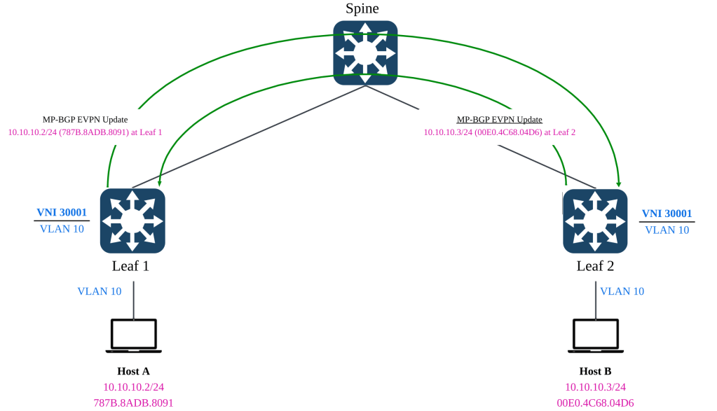 In the previous blog post in which we have discussed bridging using L2VNI, we have leveraged on MP-BGP EVPN address family. With EVPN supporting optional IP prefixes, VTEPs in the fabric are able to learn the MAC and IP bindings of the hosts, and the remote VTEPs that its located.